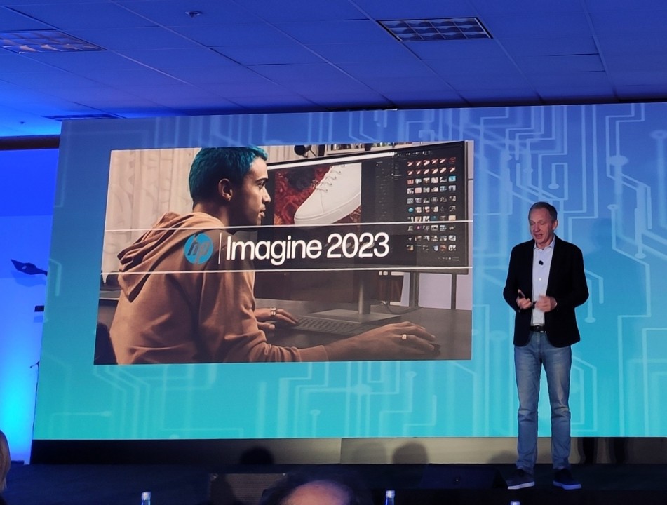 Enrique Lores, CEO di HP, durante il keynote di apertura di Imagine 2023