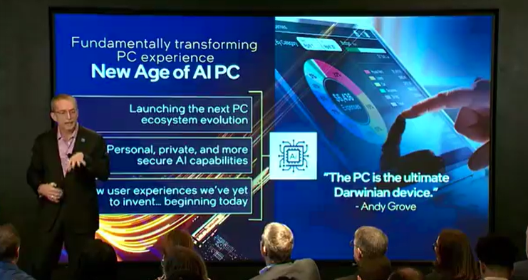 Per introdurre la “nuova era degli AI PC”, resa possibile dai nuovi processori Intel Core Ultra dotati anche di NPU integrata, nel suo keynote Gelsinger ha anche rispolverato gli Intel Centrino, che come noto vent’anni fa furono i primi chip per PC con il wi-fi integrato e che liberarono dalla schiavitù del cavo. Dopo poco, avere un notebook senza wi-fi divenne semplicemente impensabile, ed è forse per questo che durante l’evento è stata fatta la previsione che entro quattro anni l’80% dei PC sarà dotato di intelligenza artificiale. Traguardo forse ambizioso, ma la potenza di fuoco schierata da Intel e dai suoi partner è impressionante: a partire dalla data ufficiale di presentazione, i processori Core Ultra mobile sono presenti in più di 230 tra primi AI PC al mondo, prodotti tra gli altri da Acer, Asus, Dell, HP, Lenovo, Microsoft, e Samsung.