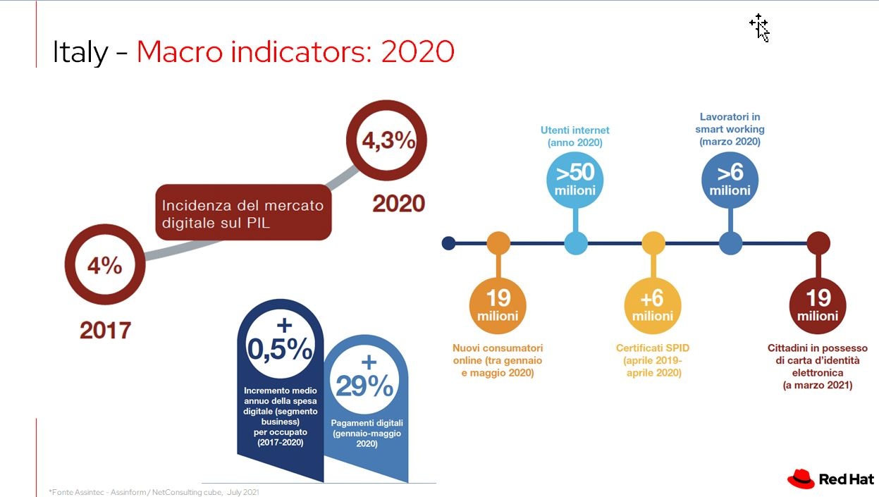 E' Giorgio Galli, Senior Manager Solution Architecture Presales Team Italia, Red Hat a descrivere dal palco la capacità di Red Hat di abilitare i processi di trasformazione delle aziende clienti: “L’Open Source non è la nuova norma, ma è la norma. Oggi rileviamo che quando si parla di progetti di innovazione e trasformazione le aziende scelgono l’open source; un mondo in cui Red Hat è profondamente immerso da oltre 25 anni con elevate competenze e un’offerta innovativa di tecnologie applicate a livello enterprise.”![2021 11 27 19 30 56 microsoft powerpoint [rodolfo welcome] 2021 11 27 19 30 56 microsoft powerpoint [rodolfo welcome]](https://www.impresacity.it/immagini/2021/11/2021-11-27-19-30-56-microsoft-powerpoint-rodolfo-w-1.jpg)