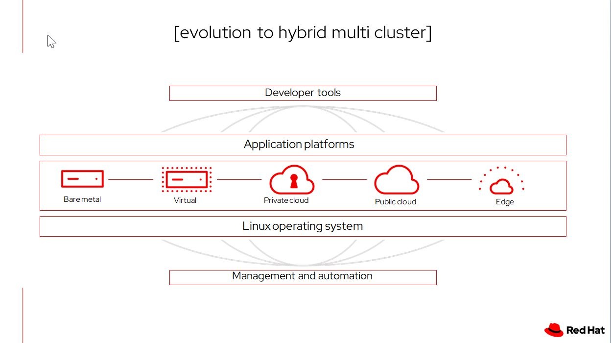 Red Hat dà quindi la possibilità di fare provisioning di ambienti container bar metal/ fisico, virtuale (da segnalare la recente partnership siglata con Nutanix per l’iperconvergenza), nonché creando cluster sugli hyperscaler.