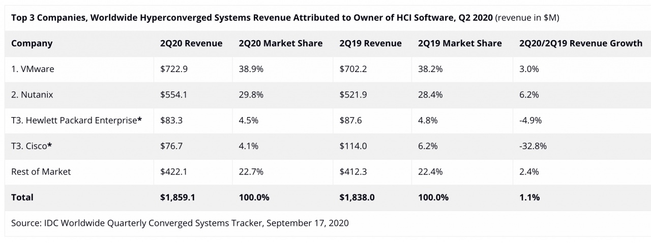 Chi controlla il mercato, lato vendor? Dipende dai punti di vista, perché un sistema convergente può essere venduto da un vendor ma basarsi sulle funzioni di iperconvergenza della piattaforma software di un altro vendor. In base al primo criterio, la metà del mercato è fatta nell'ordine da