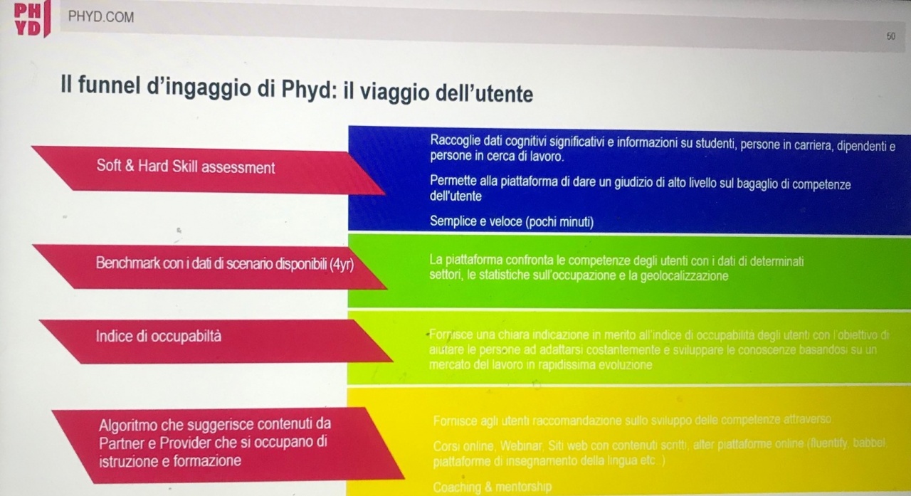 il gap tra domanda e offerta di competenze è attualmente del 18%. "Il tema dell’aggiornamento professionale continuo rappresenta uno dei punti centrali per il mondo del lavoro del futuro. Nei prossimi anni, anche a seguito dell’emergenza sanitaria appena vissuta, il mondo del business subirà cambiamenti ancor più repentini di quelli che abbiamo vissuto fino ad ora e solo chi riuscirà a coltivare le proprie competenze professionali, aggiornandole e sviluppandone di nuove, avrà l’opportunità di rimanere appetibile sul mercato del lavoro. Phyd vuole essere lo strumento digitale in grado di aiutare le persone a calarsi nel futuro e l’hub di Milano un modello di ispirazione e guida per chi come noi è quotidianamente impegnato nello sviluppo del Capitale Umano”, ha commentato