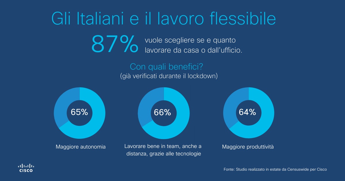 Gli intervistati ci parlano di benefici importanti, di desiderio di autonomia, di essere protagonisti del proprio lavoro: le aziende italiane hanno il dovere di ascoltare queste esigenze e di trasformare l’esperienza dell’emergenza in una opportunità per il futuro, con un cambiamento culturale profondo. Con le tecnologie giuste, con le competenze necessarie, con la fiducia si può cambiare il mondo del lavoro mettendo al centro davvero le persone in modo che siano più soddisfatte e produttive”.