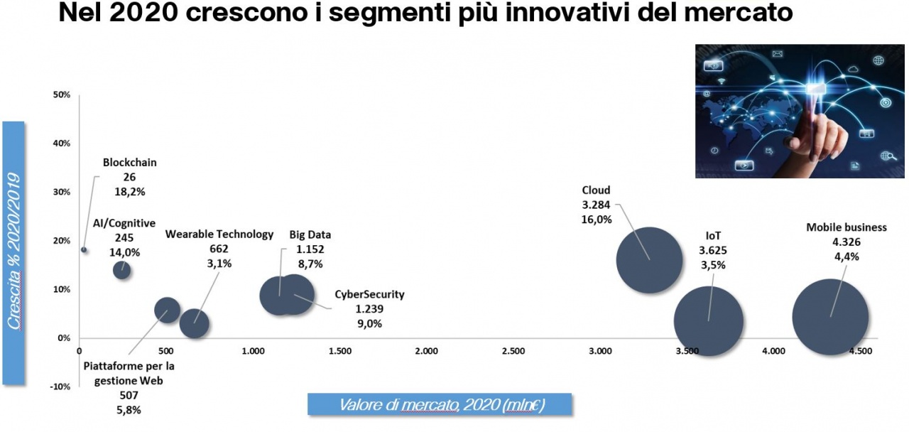 I dati Anitec-Assinform ribadiscono la centralità del digitale, che regge il colpo della pandemia. Prevista una crescita del 3,4% nel 2021 e del 3,3% nel 2022