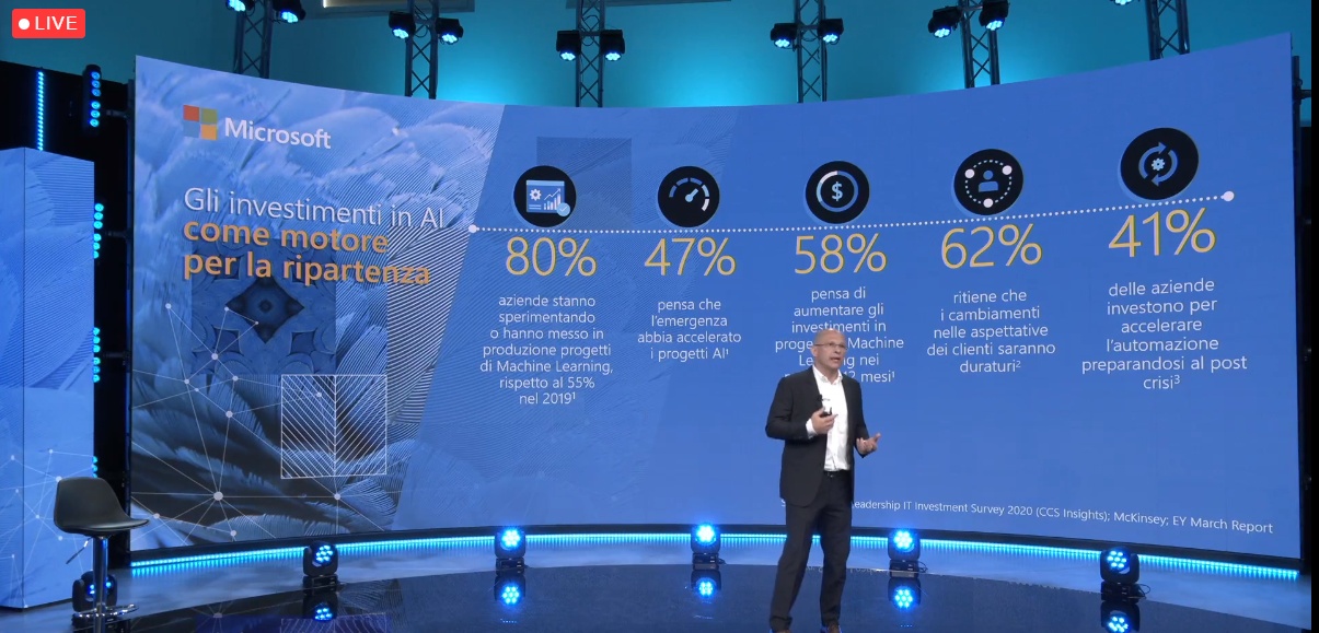 Matteo Mille, Chief Marketing and Operations Officer di Microsoft ItaliaLa valenza strategica degli investimenti in Intelligenza Artificiale, anche come motore di ripartenza, viene sottolineata da