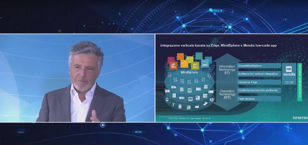 una soluzione che in generale prevede un’integrazione verticale tra OT e IT, mettendo in condivisione i dati per ottimizzare i processi e altre valutazioni. Spazio, quindi, a field device, controller, industrial edge, software per integrazioni verticali, Cloud/Mindshpere (il sistema operativo aperto di Siemens) per arrivare fino alla piattaforma low-code Mendix.