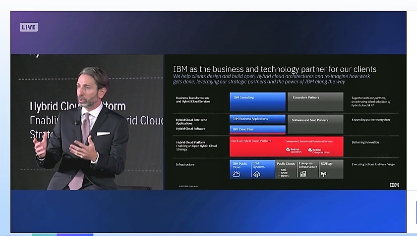 riteniamo che il cloud ibrido multipiattaforma abbia un valore per i nostri clienti di due volte e mezzo maggiore rispetto all'adozione del solo cloud pubblico. E questo è dovuto al fatto che sempre di più le infrastrutture, siano esse pubbliche o private, vedranno nel corso degli anni il consolidarsi dell’eterogeneità di piattaforme e infrastrutture differenti: quindi dalle piattaforme e infrastrutture on premise, cioè quelle tradizionali, a quelle legate a strumenti di public cloud, che possono essere sia IBM sia di altri vendor sul mercato, fino al mondo del cloud privato e dell’edge computing”.