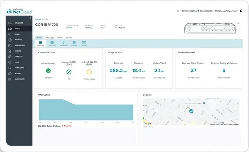 NetCloud permette in particolare di avere un unico punto centrale di visibilità e gestione da cui monitorare e controllare tutta una infrastruttura distribuita WWAN. Questa gestione trasversale si traduce ad esempio nella possibilità di avere connessioni stabili e adeguate anche quando la copertura del segnale è debole, di ottimizzare le caratteristiche della rete in base alle performance delle applicazioni, di capire quali flussi dati stanno scorrendo sulla rete e quali vadano eventualmente privilegiati in funzione delle necessità aziendali.