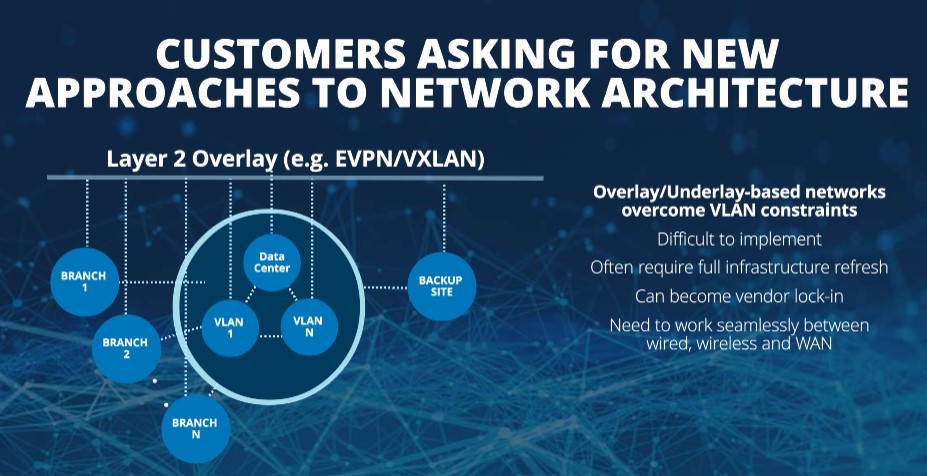 Chiaramente, la complessità della rete fisica non scompare per magia. Il vantaggio di NetConductor è che vi applica protocolli e approcci moderni - principalmente Ethernet VPN (EVPN) e le Virtual extensible LAN (VXLAN) - per estendere le funzioni di segmentazione e protezione del traffico a reti che sono troppo articolate per le VLAN. Tra l'altro, sia EVPN sia VXLAN sono protocolli standard, quindi l'approccio di NetConductor porta flessibilità senza alcun rischio di quel vendor lock-in che ormai nessuno vuole, nemmeno per le tecnologie particolarmente vantaggiose.