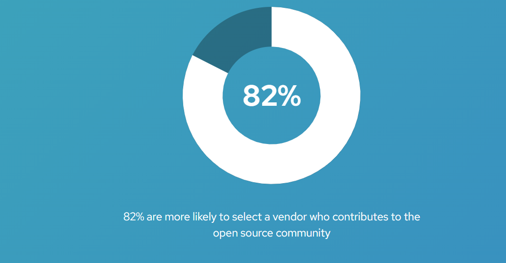 Nel tempo i driver sono diventati la migliore qualità, la sicurezza e l’accesso privilegiato all’innovazione, che sempre più spesso lasciano in secondo piano il costo inferiore come beneficio primario del software open source enterprise. Ma siamo stati sorpresi quando l’82% degli intervistati ha dichiarato di essere più propenso a scegliere un fornitore che contribuisce alle community.