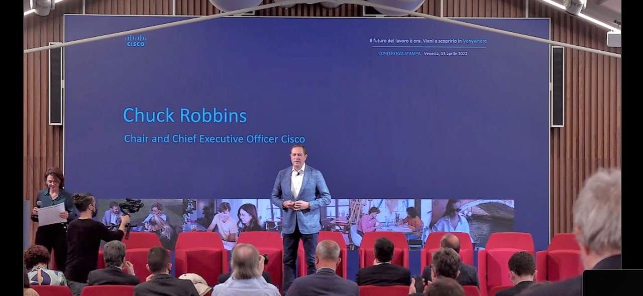 Che il progetto stia a cuore al colosso tecnologico californiano è dimostrato anche dal fatto che Chuck Robbins, Chair e CEO di Cisco, è intervenuto personalmente alla presentazione ufficiale, svoltasi a metà aprile nelle Procuratie Vecchie, storico edificio che abbraccia l’intero lato nord di Piazza San Marco e appena riaperto al pubblico dopo 500 anni, a seguito del restauro da parte delle Assicurazioni Generali, che qui avevano numerosi uffici, poi trasferiti nella sede di Mogliano Veneto, nell’entroterra veneziano.