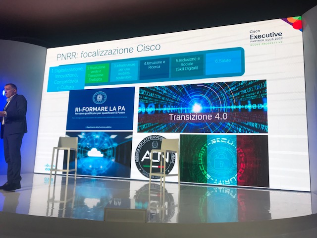 Cisco inoltre è impegnata nello standardizzare e velocizzare tutto il meccanismo legato al PNRR, attraverso schede progetto standard e predefinite – una sorta di pre-lavorato - da scrivere e completare in tempi definiti con contenuti da dare alle aziende che non sanno come muoversi per partecipare e rispondere ai bandi su soluzioni tecnologiche (IoT, cybersecurity, …) ma anche su servizi di formazione, installazione, assistenza, supporto.