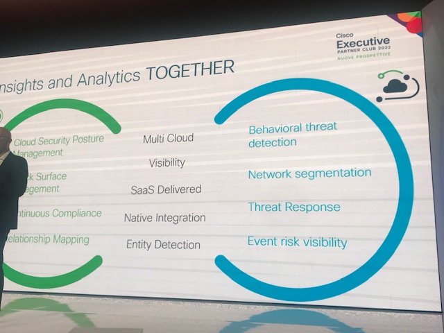 Entra nel vivo del tema della security Andrea Castellano, Cybersecurity Sales, Cisco Italia, sottolineando quanto sia dinamica caratterizzata da un’industria del cyber crime che corre veloce con continue nuove minacce; da interpretare quindi come un business enabler. In quest’ambito c’è un grosso problema di competenze che per Cisco e i partner si traduce in una grande opportunità – quella dei Managed Security Service, che significa trasformare in modo rapido il proprio portafoglio da prodotti tradizionali a servizi gestiti, mantenendo il proprio Dna specifico ma evolvendolo verso la logica dei servizi, disponibili su marketplace con nuovi modelli di pricing interessanti per i clienti. “Nuovi paradigmi da abbracciare e su cui accelerare insieme”. Uno scenario globale di continua ‘insicurezza’ che richiede maggiore pro-attività, a cui Cisco risponde con Talos, la threat intelligence in grado di gestire non milioni ma bilioni di eventi: “La Digital Transformation è elemento fondamentale per continuare a stare sul mercato, adottando un approccio security e visibilità by design” - e Cisco SecureX - composto da soluzioni di startup innovative a livello internazionale o integrazioni con altri prodotti di altri vendor del mercato - è la risposta migliore per la protezione in ambiente cloud in quanto adotta un approccio end-to-end, ponendosi come engine intelligente in grado di orchestrare e automatizzare tutti i processi di security, integrando tutti gli asset che sono sul cliente e combinando insight e analytics con funzionalità di automazione.