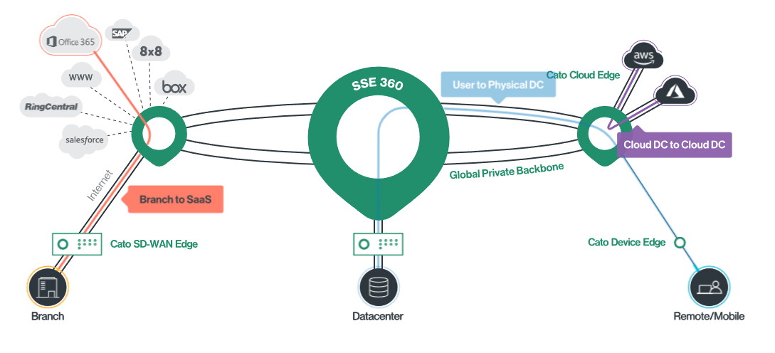 Con oltre 75 PoP (Point of Presence) distribuiti a livello globale, Cato connette e protegge siti, utenti e istanze cloud in tutto il mondo. Le funzionalità di sicurezza offerte da Cato SASE Cloud includono Secure Web Gateway (SWG), Cloud Access Security Broker (CASB) con Data Loss Prevention (DLP), Zero Trust Network Access (ZTNA) e Firewall-as-a-Service (FWaaS) con Advanced Threat Prevention (IPS, Next Generation Anti-malware).
