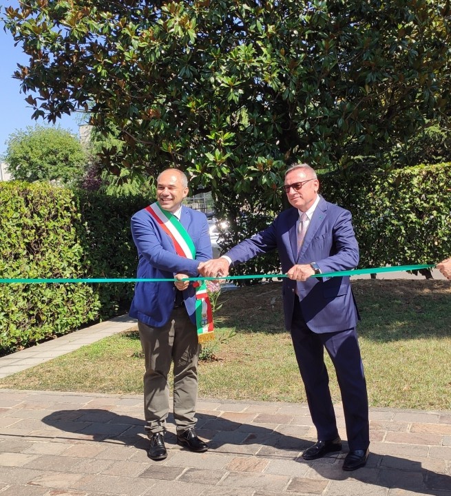 Il simbolico taglio del nastro con Claudio Basssoli e il Sindaco di Cernusco sul Naviglio