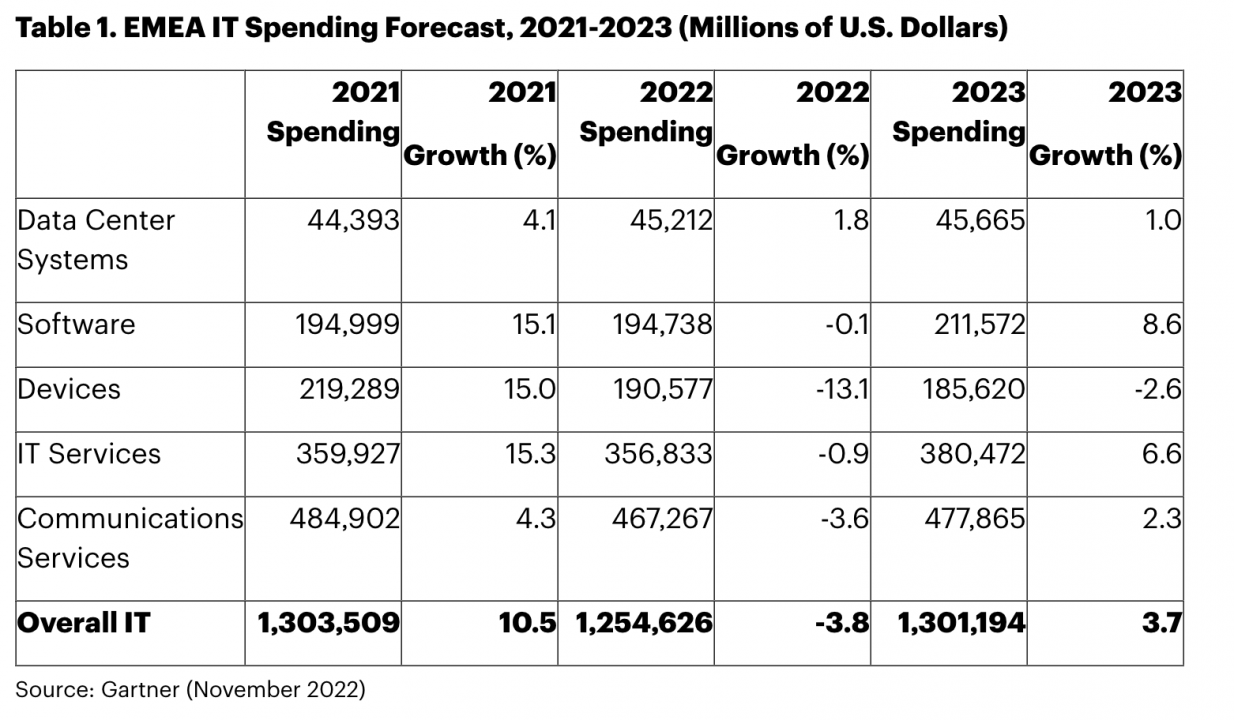 Se il 2022 europeo chiuderà con il segno meno, il 2023 vedrà secondo Gartner una crescita del 3,7% negli investimenti IT