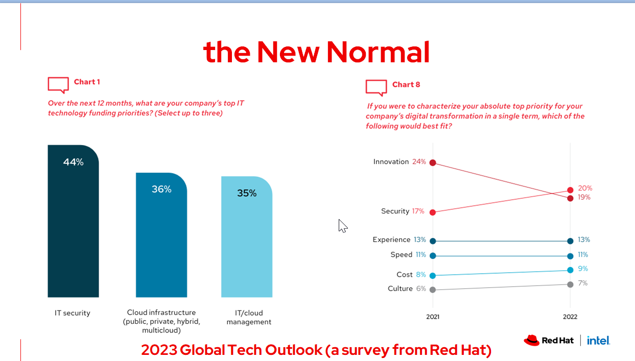 Un digitale e una tecnologia moderna che si confermano al centro delle priorità dei clienti, come si evince anche da una recente indagine condotta da Red Hat che ha coinvolto diverse centinaia di professionisti IT per capirne a fondo esigenze e priorità di investimento.