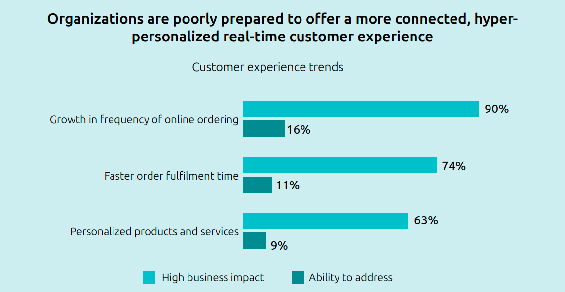 La maggiore attenzione alla sostenibilità, i cambiamenti socio-economici globali e le mutevoli richieste dei consumatori stanno causando notevoli stravolgimenti nelle supply chain di molte organizzazioni. In questo contesto, le principali preoccupazioni delle aziende leader sono la riduzione delle emissioni di CO2 a tutti i livelli della supply chain (95%) e la crescita dei volumi di e-commerce (90%). Circa il 92% delle organizzazioni intervistate ha dichiarato che la continua delocalizzazione della catena di fornitura globale avrà un impatto su di loro, ma solo il 15% è pronto per affrontarla.