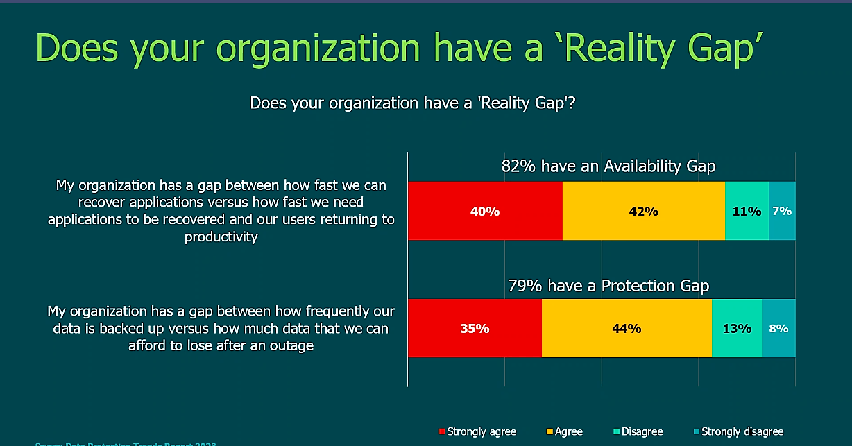 Analizzando da vicino i punti salienti del Veeam Data Protection Trends Report 2023, con l'aiuto di Jason Buffington, VP Market Strategy di Veeam, e Dave Russell, VP Enterprise Strategy di Veeam, è in primo luogo emerso che per far funzionare le aziende è necessaria una protezione dati moderna: quattro organizzazioni su cinque ritengono di avere un divario, o un senso di insoddisfazione o ansia, tra le aspettative delle business unit e le prestazioni dei servizi IT. L'82% ha un "gap di disponibilità" tra la rapidità con cui i sistemi devono essere recuperabili e la rapidità con cui l'IT è in grado di ripristinarli. Il 79% cita un "gap di protezione" tra la quantità di dati che possono perdere e la frequenza con cui l'IT li protegge. Queste lacune sono una delle ragioni per cui il 57% delle organizzazioni prevede di cambiare la protezione primaria dei dati nel 2023, oltre a giustificare un aumento dei budget per la protezione dei dati.