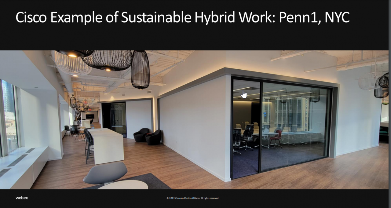 Una vision che è già realtà a New York, come ben spiegato da Mark Miller Director, Global Collaboration Center of Excellence, in collegamento proprio da quella sede: “Cisco in realtà ha iniziato ad abbracciare il concetto di hybrid work ben prima della situazione pandemica, introducendolo 12-13 anni fa, attraverso pratiche di lavoro flessibili e utilizzando strumenti tecnologici all’avanguardia”.