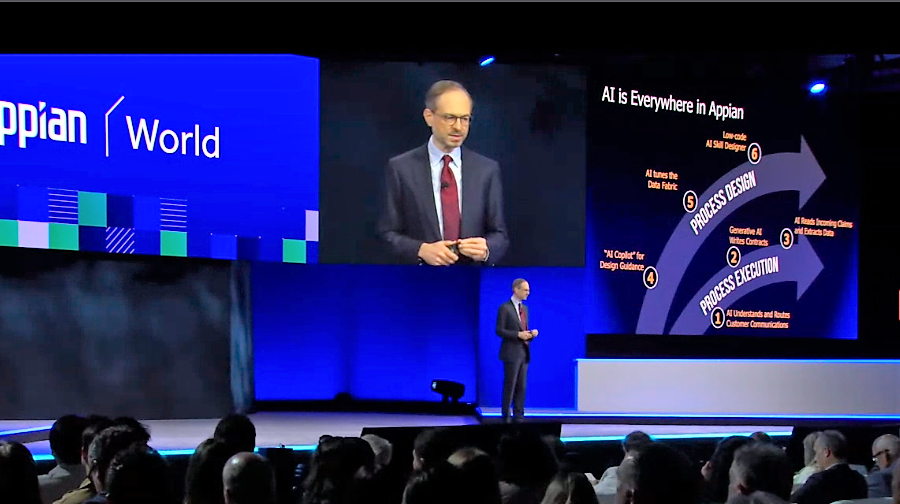 Michael Beckley durante il suo keynote all'evento Appian World di maggio 2023