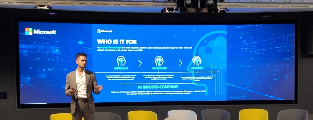 L’acronimo AI LAB è invece derivato da Learn – Adopt – Benefit: “Learn significa che chiunque si avvicini all’AI generativa deve avere l’opportunità di acquisire le competenze necessarie per utilizzarla al meglio; Adopt si riferisce invece alle azioni per favorire al massimo l’adozione dell’AI con opportune indicazioni strategiche; e infine Benefit fa riferimento al fatto che l’utilizzo dell’AI in tutti gli aspetti della vita aziendale deve portare a reali vantaggi di business”, ha spiegato Raffaele De Lucia, MTC Director di Microsoft.