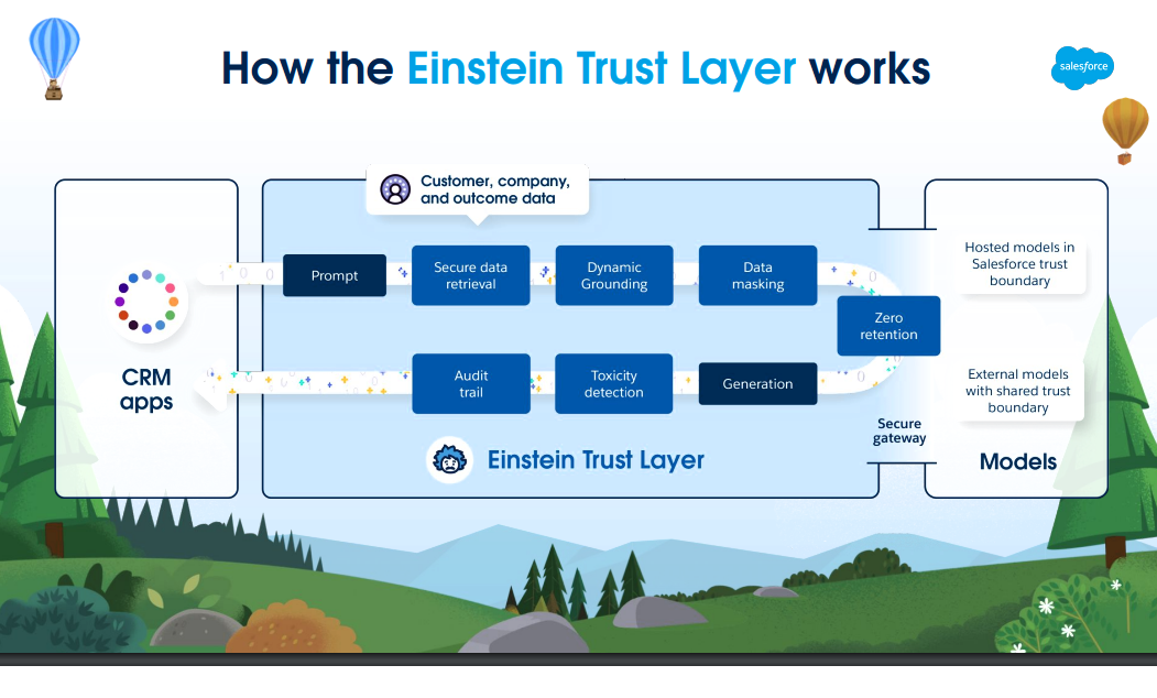 Progettato per gli standard di sicurezza aziendali, Einstein Trust Layer consente infatti di trarre vantaggio dall’AI generativa senza compromettere i dati dei clienti e, allo stesso tempo, permette alle aziende di utilizzare i propri dati affidabili per migliorare le risposte dell’AI generativa. Tra le sue caratteristiche, vi è quella di essere integrato in ogni copilot Einstein e di basare le richieste generative sui dati aziendali affidabili grazie all'integrazione con Salesforce Data Cloud. Inoltre, le aziende possono essere sicure che i loro dati non saranno mai conservati da fornitori di LLM di terze parti e il mascheramento delle informazioni personali identificabili (PII) dei clienti garantisce una maggiore privacy dei dati. Salesforce fa infine notare che un LLM con rilevatore di sicurezza lavorerà per evidenziare i rischi connessi ai brand assegnando un punteggio alle nuove generazioni di AI per garantire che le risposte siano sicure e affidabili, mentre ogni interazione con l’intelligenza artificiale sarà catturata in un audit trail sicuro e monitorato, dando alle aziende visibilità e controllo su come vengono utilizzati i loro dati.