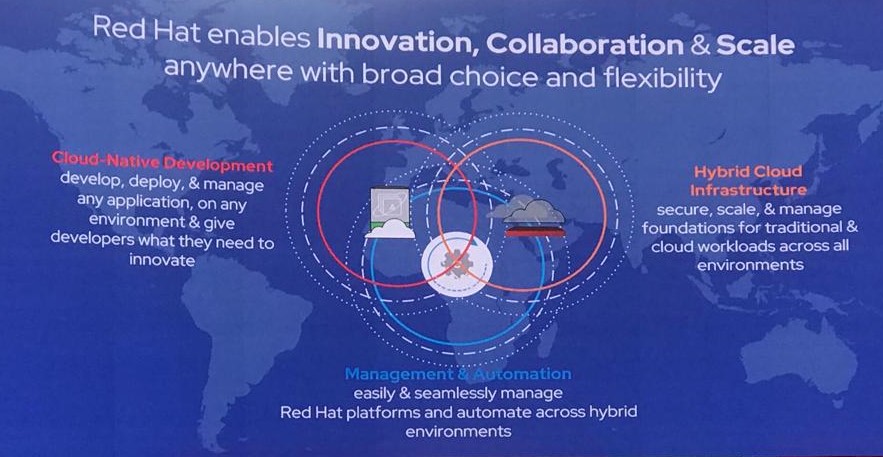 A tutto ciò si aggiunge un'ulteriore dimensione nella quale Red Hat sta investendo in maniera significativa che è rappresentata dal voler rendere le tecnologie acquisibili, fruibili, gestibili con la maggior libertà di scelta e flessibilità possibile, nonché in totale autonomia presso i propri data center piuttosto che acquisibili sempre e installabili presso i data center di uno più cloud provider di riferimento e di fiducia, mantenendone comunque il controllo operativo, per arrivare poi al massimo grado di flessibilità e di libertà rappresentato dal delegare in toto tanto la gestione commerciale con politiche, per esempio, pay ‘per use, quanto la gestione operativa della tecnologia a un cloud provider di riferimento e di fiducia e/o a più cloud provider.