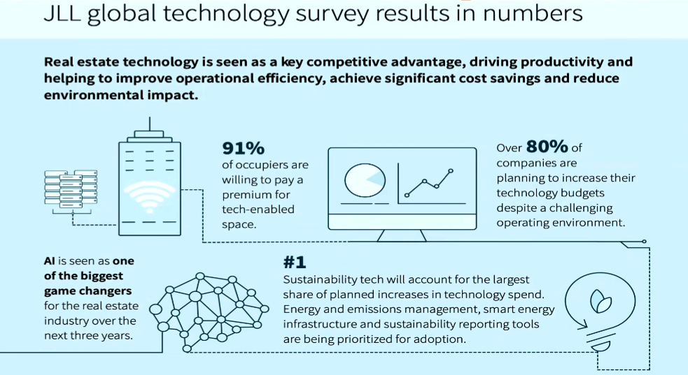 Quest'ultimo rappresenta un tema rilevante, alla luce del fatto che “oggi ci troviamo di fronte a una rivoluzione nel settore real estate: il mercato smart building, quindi della tecnologia applicata ai building, nel 2022 era di 80 miliardi di dollari, ma nel 2023 era già salito a 97 miliardi di dollari, con una stima per il 2030 nell’ordine dei 408 miliardi di dollari”, sottolinea Dalmazzoni, citando anche una ricerca recente dalla quale è risultato che “il 91% delle aziende è disposto a pagare un prezzo premium per spazi tecnologicamente avanzati, e che l'80% delle aziende sta pianificando di aumentare il budget relativo alle tecnologie dei propri uffici, ma soprattutto l'AI viene ritenuta il maggiore game changer anche in ambito real estate da qui a tre anni”.