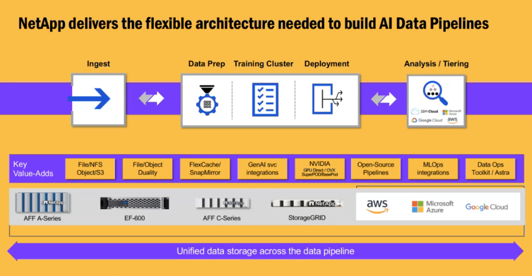 Innanzitutto, sintetizza Patano, “vi sono le tre nuove soluzioni NetApp AFF A1K, AFF A90 e AFF A70: soluzioni di storage unificato e multi-protocollo che portano innovazione su alcuni pillar fondamentali, come quello della potenza, dato che si tratta di sistemi estremamente performanti che incrementano di due volte le prestazioni, migliorando le performance in termini sia di IOPs sia in termini di throughput, e questo è prefetto non solo per l’AI ma anche per la gestione di database, soprattutto per tutte le esigenze future di gestione del dato, che sono sempre in crescita”.