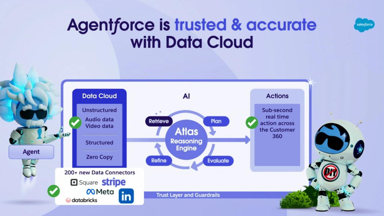 Tra i numerosi annunci attorno ad Agentforce, spicca anche il continuo impulso a Data Cloud, il cuore pulsante della piattaforma Salesforce e la base di Agentforce: da subito, Data Cloud è in grado di fornire ad Agentforce informazioni sui contenuti audio e video non strutturati, rendendoli più coerenti con il contesto, più aggiornati e più adattabili alle esigenze dei clienti. Di rilievo anche l’annuncio di Agentforce Partner Network, un ecosistema globale di partner che costruiscono nuovi agenti AI di terze parti e azioni di agenti per Agentforce. I clienti possono facilmente installare queste estensioni di terze parti da Salesforce AppExchange per personalizzare gli agenti Agentforce già pronti, creare nuovi agenti con competenze specifiche o implementare agenti creati dai partner per settori, linee di business o casi d'uso funzionali specializzati.