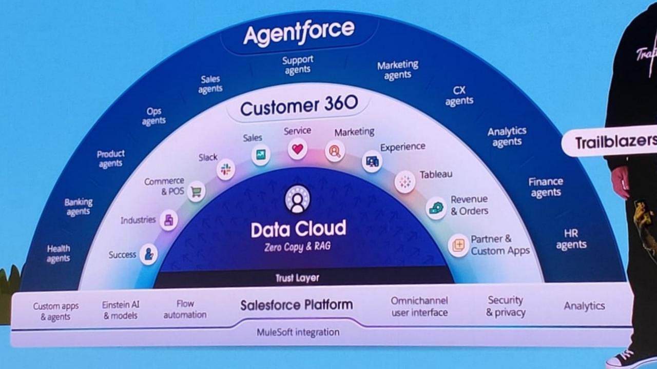 Un ecosistema aperto, che Salesforce si aspetta di far fiorire velocemente, che comprende una marea di partner internazionali. Ci sono i partner demandati espressamente allo sviluppo degli agenti AI e delle azioni programmabili (Partner e Actions Agents) all’interno dell’agente, ci sono i partner per l’implementazione, tipicamente i grandi system integrator, e gli Zero Copy Partners, fondamentali proprio nell’ambito della costruzione dei Data Cloud.