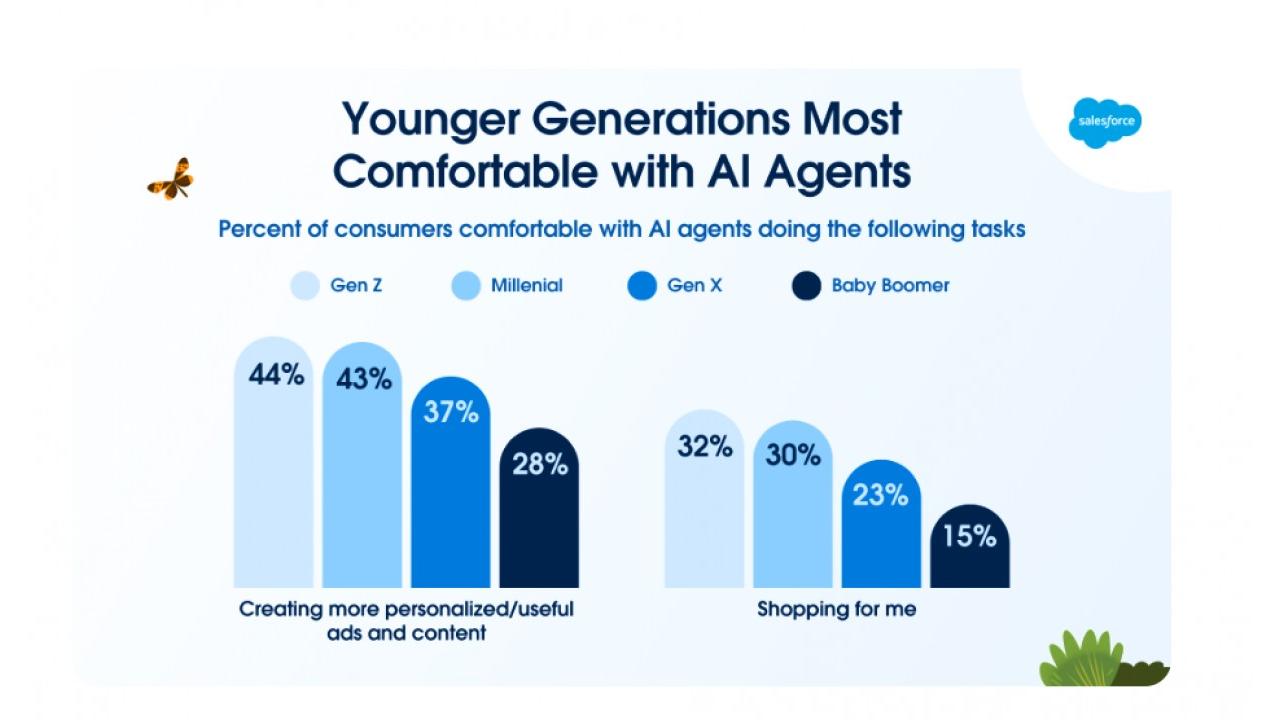 Dalla nuova edizione della ricerca di Salesforce AI Connected Customer emerge che la fiducia dei consumatori verso le aziende è ai minimi storici e che l'Intelligenza Artificiale sta aumentando le aspettative nei confronti dei brand. Oggi il 78% dei consumatori ritiene che i progressi nell’AI rendano la fiducia ancora più importante. Con la diffusione degli assistenti AI, emergono nuove opportunità per le aziende di riconquistare i consumatori offrendo soluzioni affidabili, soprattutto in vista delle festività. Questo potenziale è particolarmente rilevante per la Gen Z, con il 17% dei consumatori in questa fascia d’età che afferma di sentirsi a proprio agio nel delegare gli acquisti a un assistente AI.