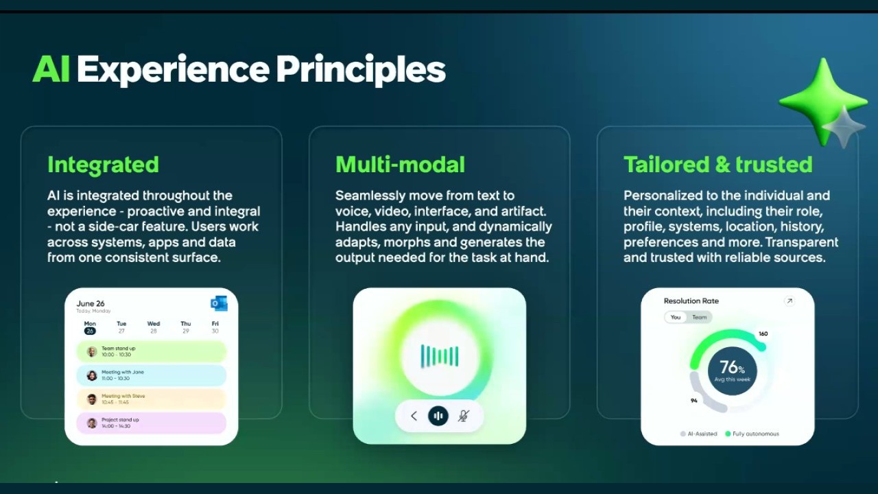Entrando nel dettaglio della soluzione, al centro di AI Experience si trovano agenti AI intelligenti e consapevoli del proprio ruolo, che lavorano fianco a fianco con i dipendenti per risolvere problemi, completare attività e ottenere risultati. Gli agenti AI operano in modo trasparente, apprendono di continuo e offrono agli utenti piena visibilità e controllo, mantenendo sempre l'AI nel flusso di lavoro su un'unica piattaforma.