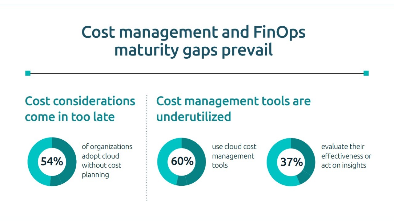 Non solo: dall’indagine emerge che il 60% delle aziende utilizza strumenti di gestione dei costi in cloud, ma solo il 37% ne valuta l’efficacia o agisce sui dati raccolti. Sebbene tre quarti (76%) abbiano già team FinOps o intendano crearli, la maggior parte si limita ad attività operative e con un perimetro ristretto. Solo il 2% ha una funzione FinOps dedicata che copre in modo integrato cloud, SaaS e Gen AI, e appena il 42% ha un’influenza sulle decisioni di business.