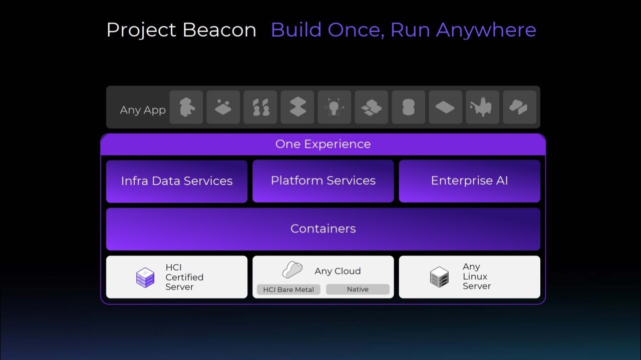 La visione a tendere di Nutanix, che prende il nome di progetto Beacon (Build Once, Run Anywhere), pensa alla piattaforma NCP (Nutanix Cloud Platform) per ambienti iperconvergenti, on premise, in public cloud e nell’edge. In particolare, è sembrato evidente da tutte le presentazioni al Nutanix next che l’occhio di riguardo sia verso il cloud privato, l’on premise, il bare metal, comunque lo si voglia definire.