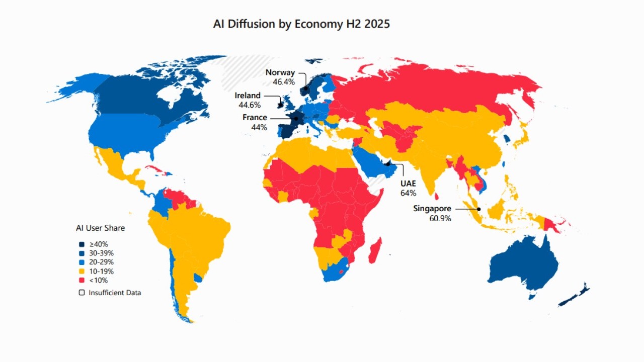 Dal Microsoft AI Economy Institute arriva la nuova edizione dell’AI Diffusion Report, lo studio che fa il punto sulla diffusione dell’intelligenza artificiale e include un’analisi delle tendenze utile a contestualizzare l’attuale adozione dell’AI su scala globale.
