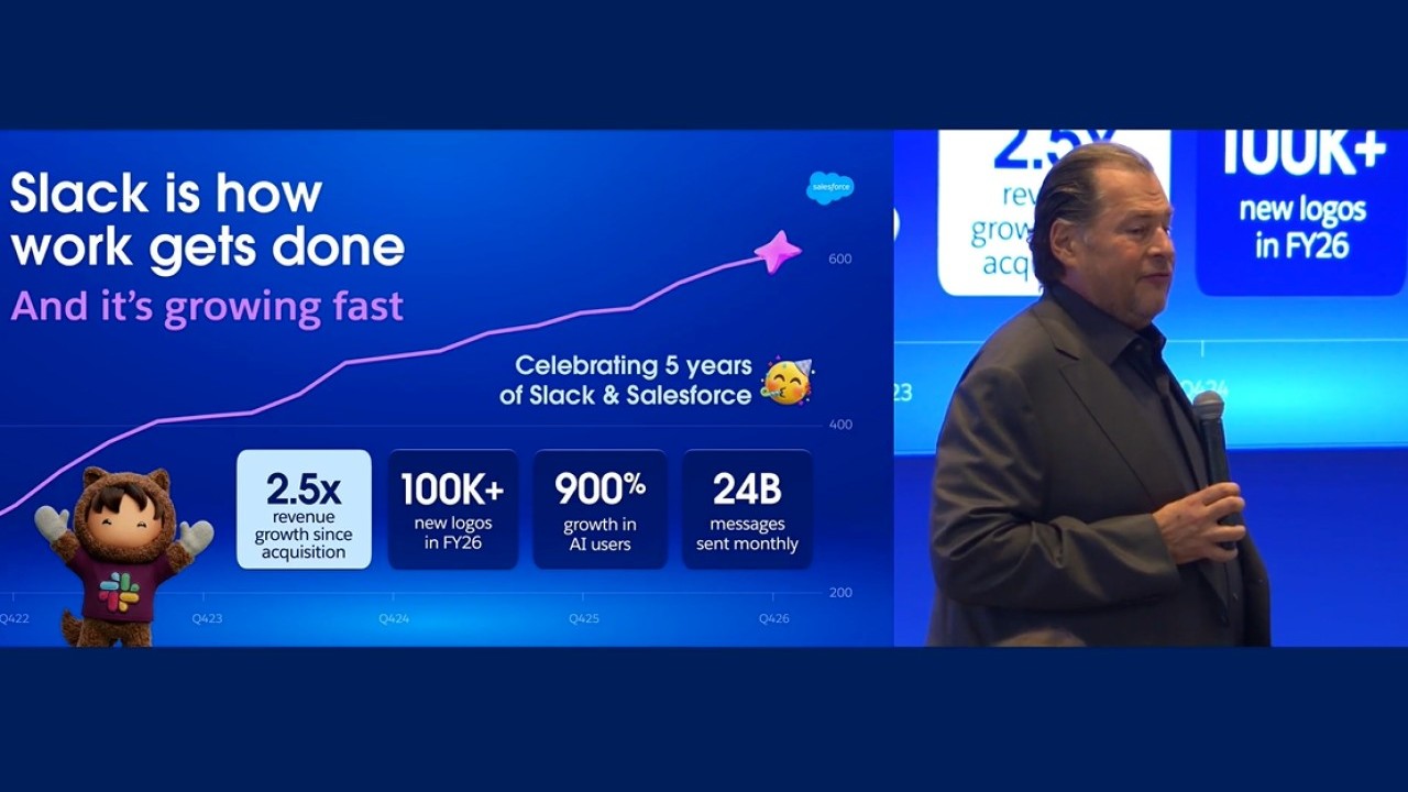 La nuova versione è stata presentata a fine marzo direttamente da Marc Benioff, Chairman e CEO di Salesforce, nonché co-fondatore, che ha voluto sottolineare come l’acquisizione di Slack, avvenuta poco più di cinque anni fa, sia stata un successo, spiegando che “abbiamo già raggiunto una crescita dei ricavi pari a due volte e mezzo rispetto al momento dell’acquisizione, e probabilmente arriveremo a tre volte entro la fine dell’anno fiscale, con un numero di aziende vicino al milione che oggi utilizza Slack: davvero una storia di grande successo”.