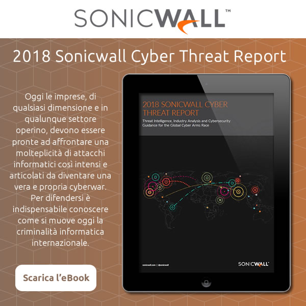 Oggi le imprese, di qualsiasi dimensione e in qualunque settore operino, devono essere pronte ad affrontare una molteplicità di attacchi informatici così intensi e articolati da diventare una vera e propria cyberwar. Per difendersi è indispensabile conoscere come si muove oggi la criminalità informatica internazionale. Grazie alle informazioni raccolte costantemente "sul campo" dalla SonicWall Capture Labs Threat Network, il Sonicwall Cyber Threat Report permette di farlo dando una visione aggiornata di come stanno evolvendo le minacce in rete e illustrando quali saranno le loro forme più insidiose nel corso del 2018.