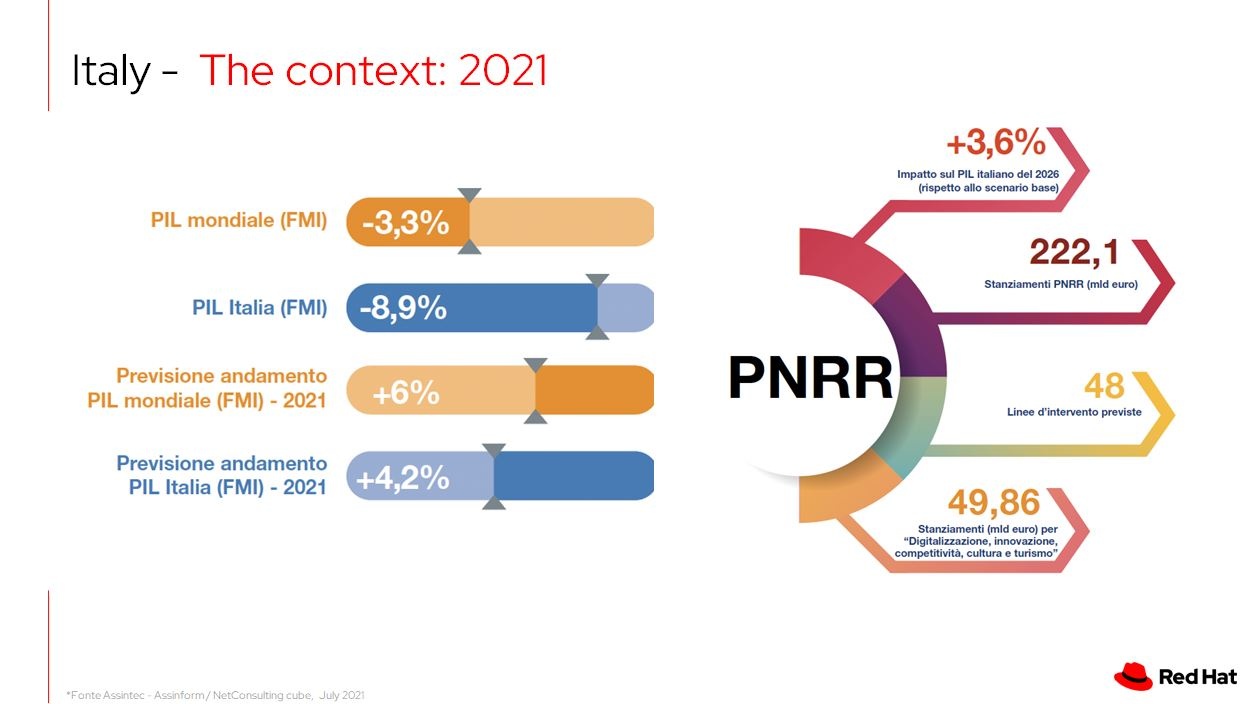 I clienti cercano qualcuno che li guidi in queste attività e Red Hat si pone come 'trusted advisor', in grado di sedersi ai loro tavoli di discussione per capirne a fondo le esigenze e aiutarli a costruire il loro percorso di trasformazione, facendo leva e prendendo spunto da numerosi business case reali.Oggi infatti il vendor copre le esigenze tecnologiche ricercate dalle aziende: IT automation e management, cloud native development, hybrid cloud infrastructure: "Red Hat è ‘il partner completo’ per la trasformazione e il cambiamento", sottolinea. E come dice la società di analisi Forrester, Red Hat OpenShift è la multicloud container development platform numero 1 a livello mondiale: “Quasi la metà del market share mondiale e italiano è di OpenShift”, conclude Falcone.![2021 11 27 19 30 20 microsoft powerpoint [rodolfo welcome] 2021 11 27 19 30 20 microsoft powerpoint [rodolfo welcome]](../../../libreria/immagini/2021/11/2021-11-27-19-30-20-microsoft-powerpoint-rodolfo-w-1.jpg)
