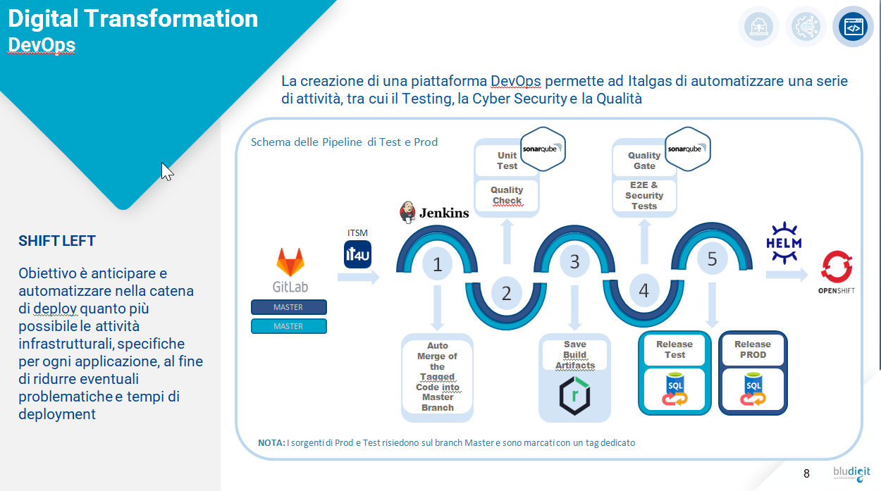 “Un percorso che non si ferma, ma prosegue con l’idea portare la nostra piattaforma OpenShift anche in cloud, con un approccio soft, utilizzandolo prima nella componente sviluppo e test per poi approcciare la parte di produzione”, afferma Andreini. "Il nostro obiettivo è migliorare il mondo DevOps e adottare tutti i sistemi di automazione per migliorare ulteriormente la nostra efficienza nei confronti del nostro business”.